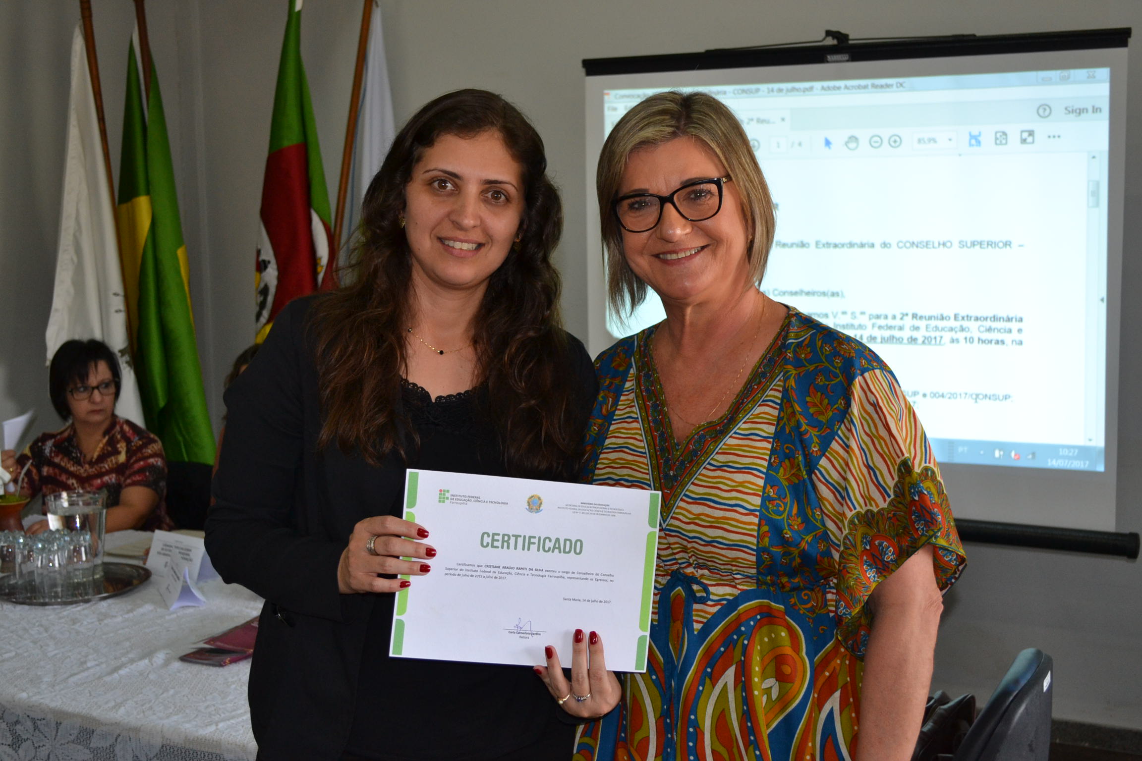 Além de receber novos membros, a reitora do IFFar certificou aqueles que contribuíram com o Conselho de 2015 a 2017.
