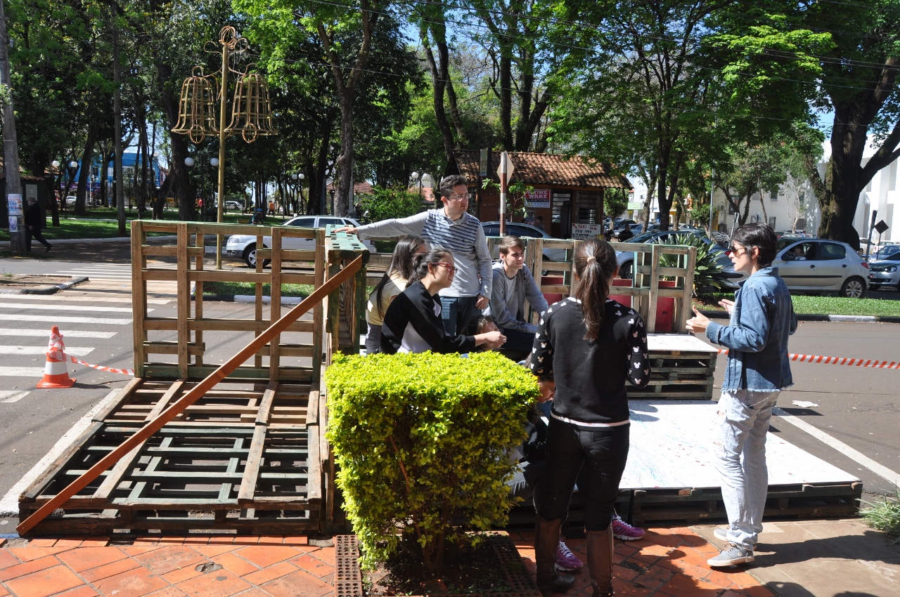 Curso de Arquitetura e Urbanismo instala parklet em rua de Santa Rosa