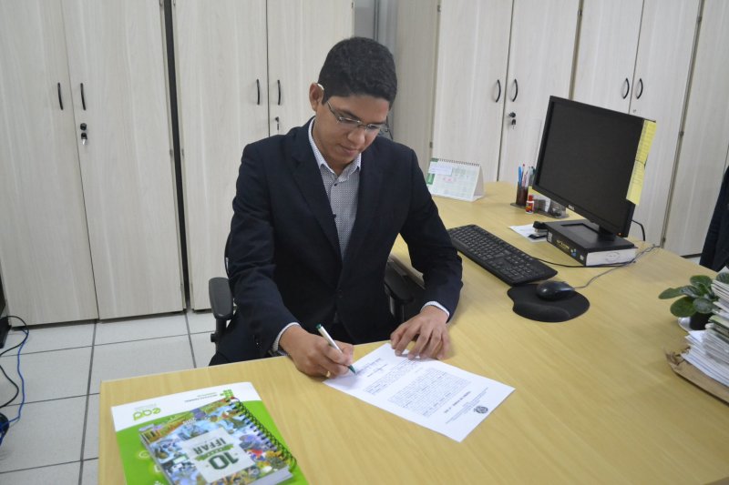 Hoje (20) mais um docente da área de Matemática tomou posse na Reitoria. Wendel Mafra Gomes dos Santos irá desempenhar as atividades no Campus Avançado Uruguaiana.