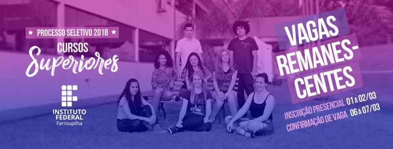 O IFFar informa que a classificação e o resultado preliminar do processo seletivo para preenchimento de vagas remanescentes nos cursos superiores serão divulgados hoje (05) até às 13h30.