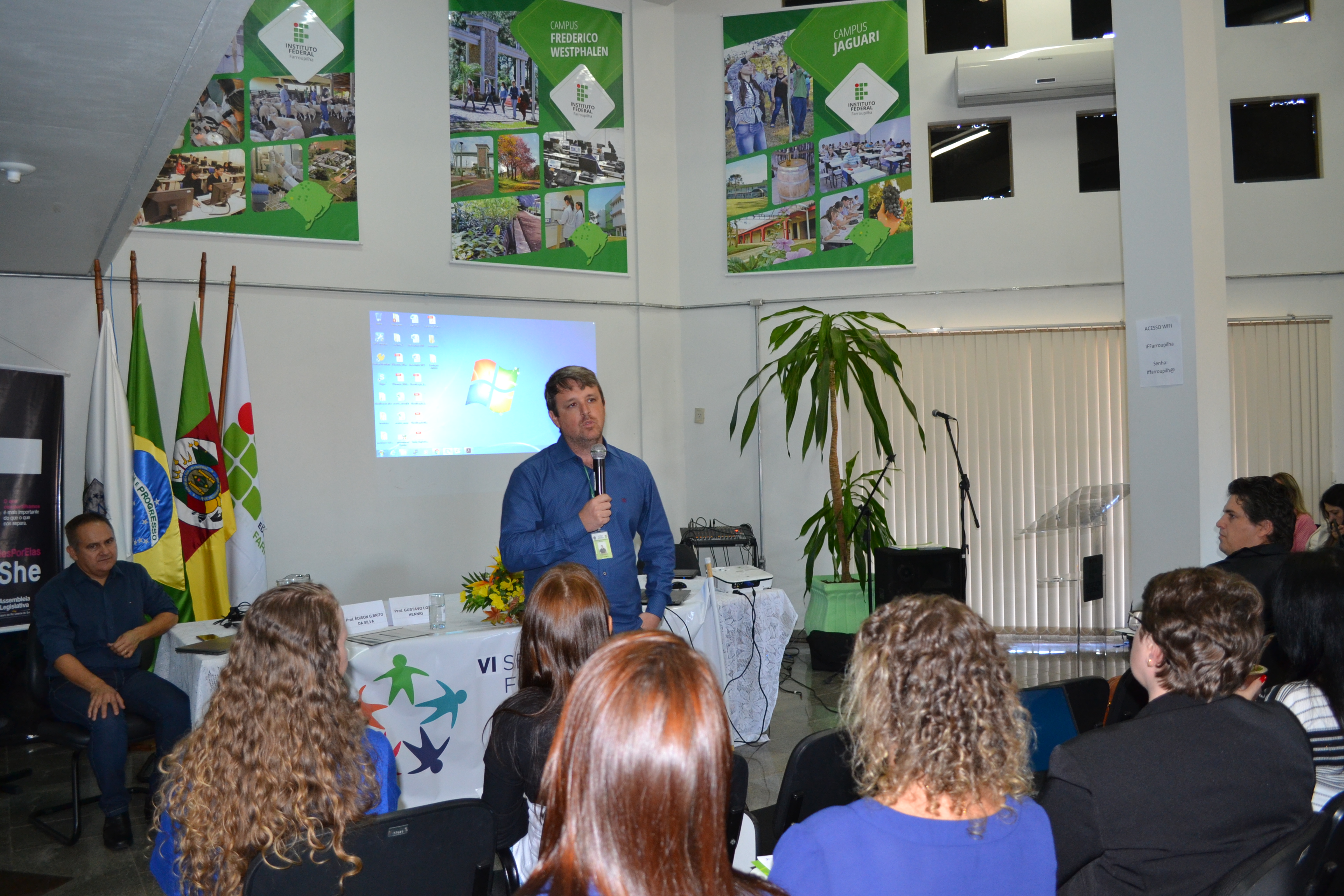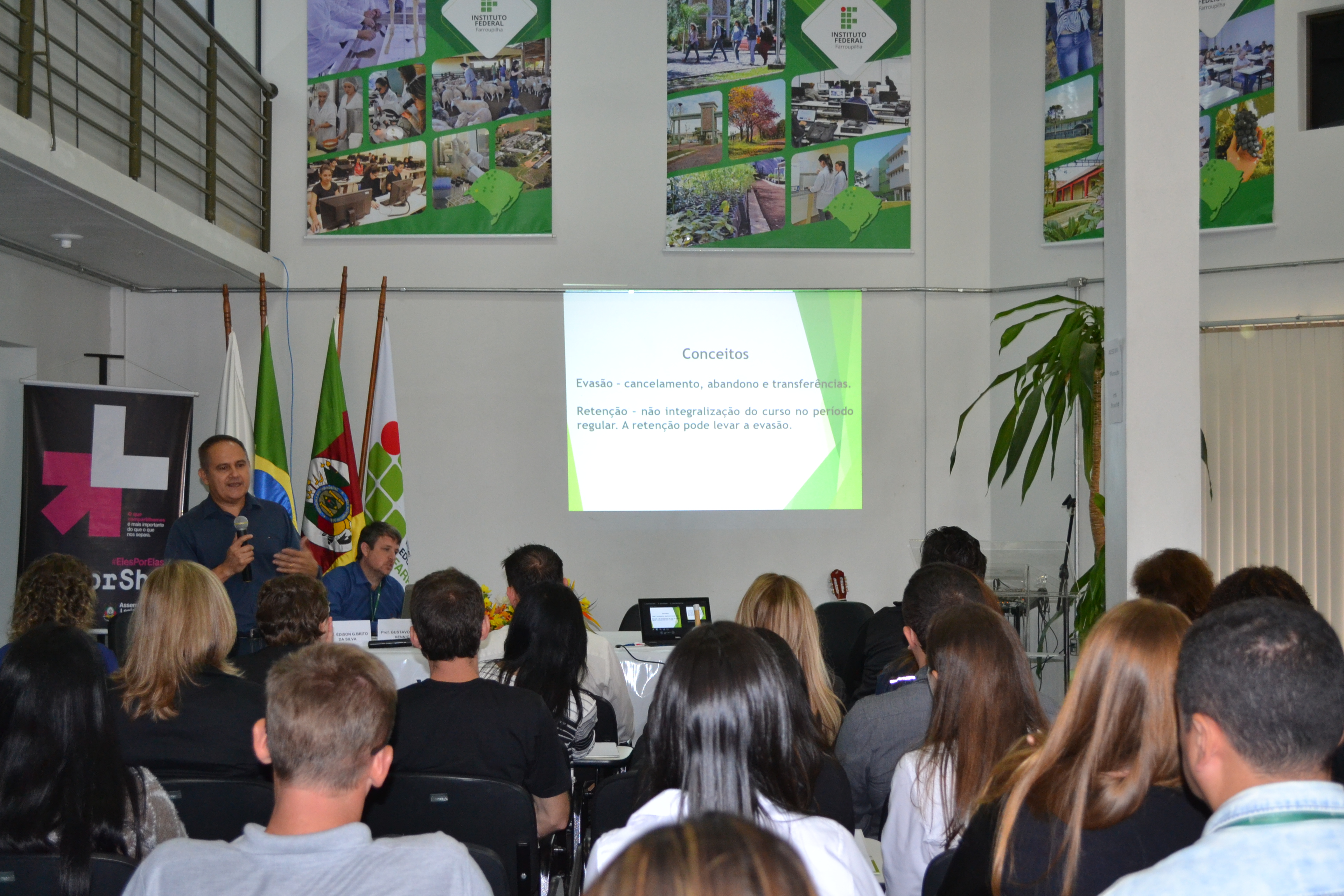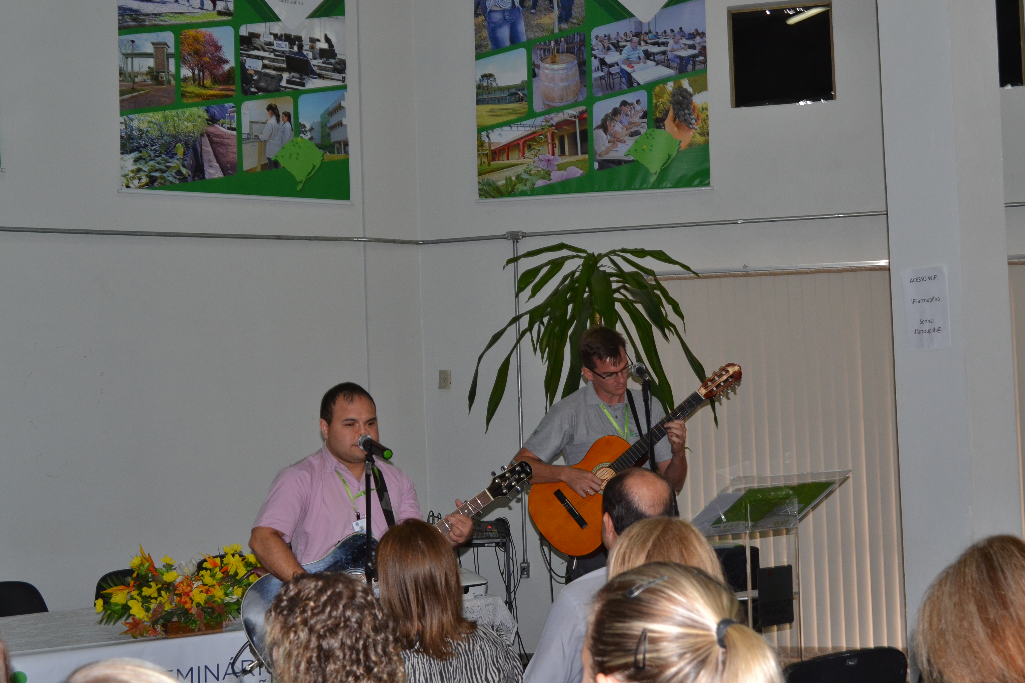 A abertura do evento foi marcada por um momento cultural, com a apresentação musical dos servidores Anderson Fetter e Eusébio Paim. Em seguida, o Pró-reitor de Ensino, Édison Brito, e o Diretor de Planejamento e Desenvolvimento Institucional, Gustavo Hennig, proferiram uma palestra sobre o Programa Permanência e Êxito (PPE) do IFFar, em que destacaram a constituição, as perspectivas e os desafios relacionados à temática. O professor Édison apresentou os conceitos principais, as causas da evasão relacionadas a fatores internos e externos e as estratégias para a permanência e o êxito.