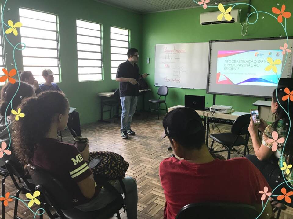 Os alunos participaram, após as atividades de aula, de uma roda de conversa sobre Procrastinação Danosa e Procrastinação Eficiente, Ócio criativo, entre outros assuntos.
