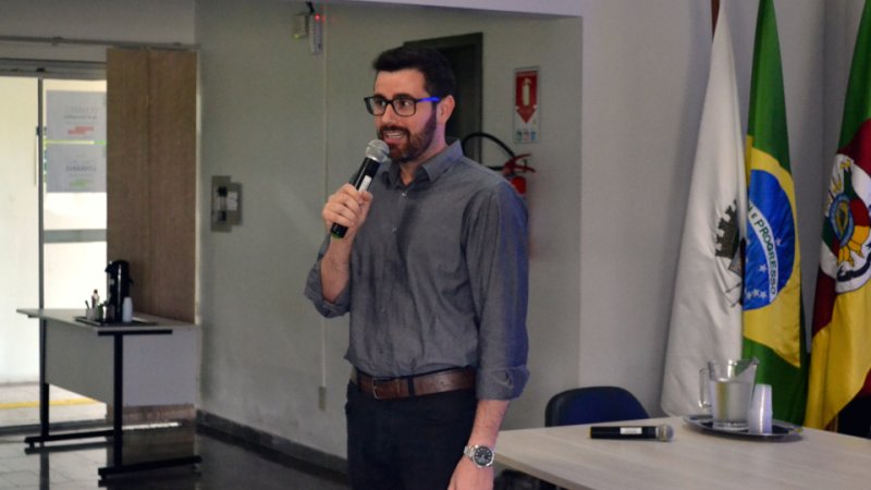 Foto: o pró-reitor de Pesquisa, Pós-Graduação e Inovação do IFFar, Arthur Frantz, falou na abertura da palestra